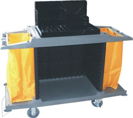 De bediening op de kamerkarretje van het hotelhuishouden